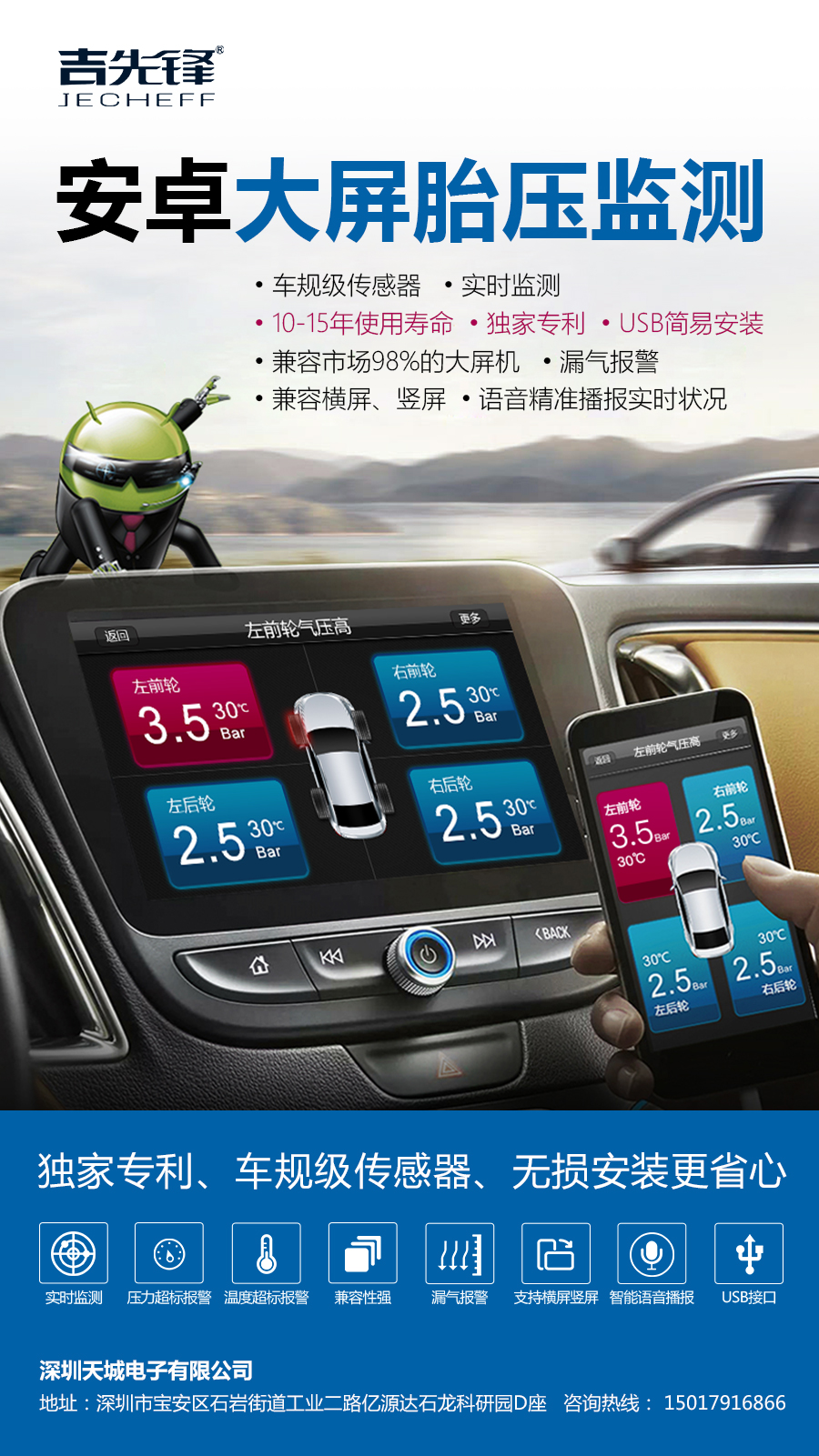 安卓系統大屏車機通配TPMS。